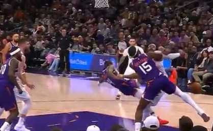 第三节比赛,杰伦-格林争抢篮板时重重摔倒在地,随后忍着疼痛再次登场。