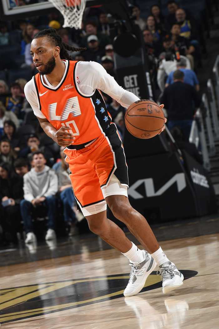 上半场,快船后卫加兰迎来首秀但表现不理想,替补12分钟24秒三分3投1中,罚球2中2拿到5分1助攻,有3次失误,正负值-11。