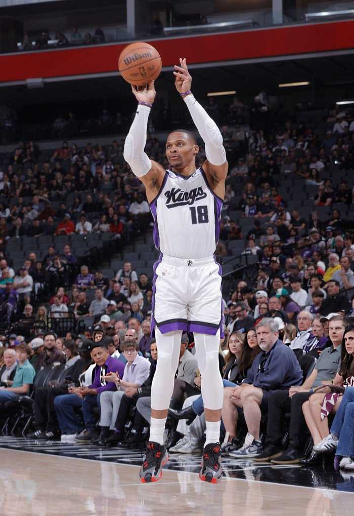 国王队今天能够取胜,老将威斯布鲁克可谓是功不可没。全场比赛,威少一共首发出场32分钟,17投7中,其中三分球5中3,罚球6中6,合计得到23分11篮板12助攻1抢断,带领球队终结连败。