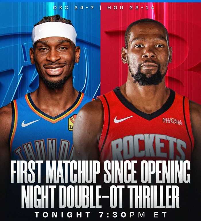 火箭这边,伊森、范乔丹和芬尼-史密斯因伤休战,雷霆中锋哈滕继续缺阵。火箭本场首发:阿门-汤普森、奥科吉、杜兰特、小贾巴里-史密斯、申京。雷霆首发:亚历山大、阿隆-维金斯、多尔特、杰伦-威廉姆斯、切特-霍姆格伦。